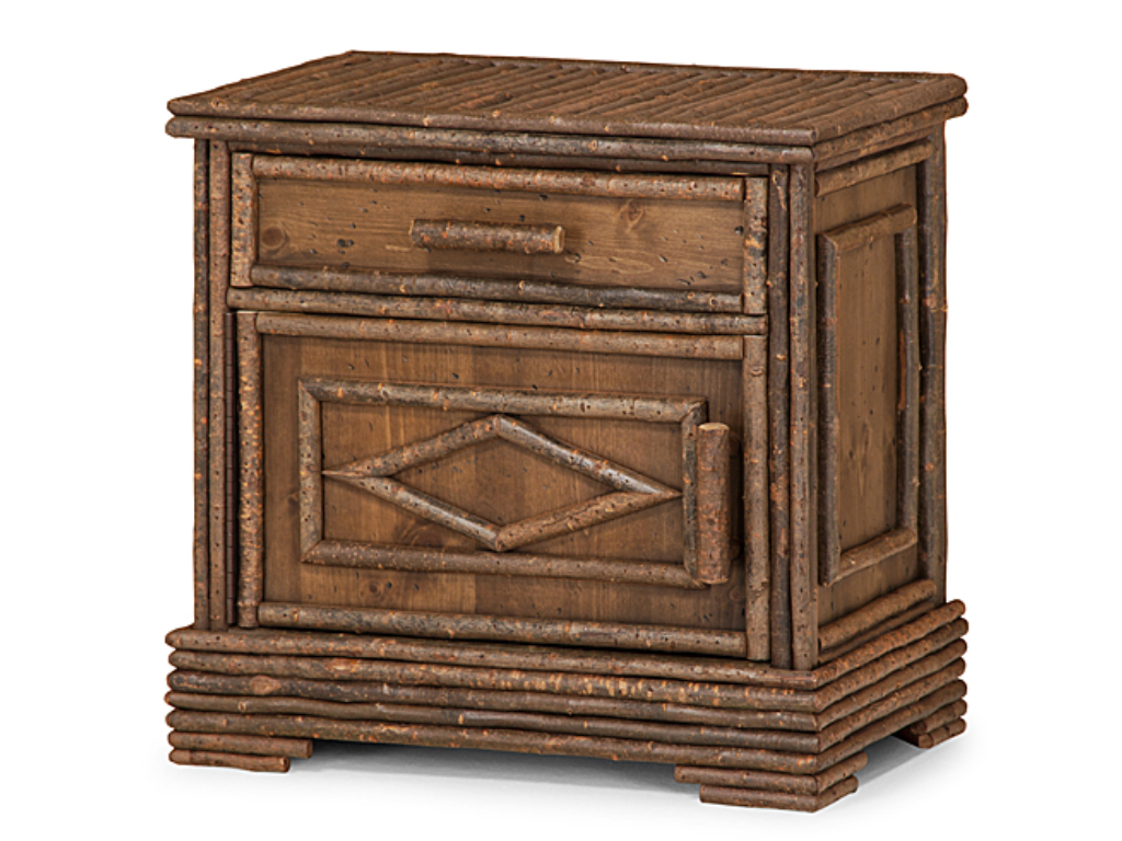 This Rustic Nightstand is the perfect accent piece next to a bed, sofa, or any space that needs charming storage in a smaller size. As with the larger pieces in the collection, our expert craftsmen carefully cut and apply by hand the branches that make up its intricate designs, using the same methods and materials that were used by the early artisans.
