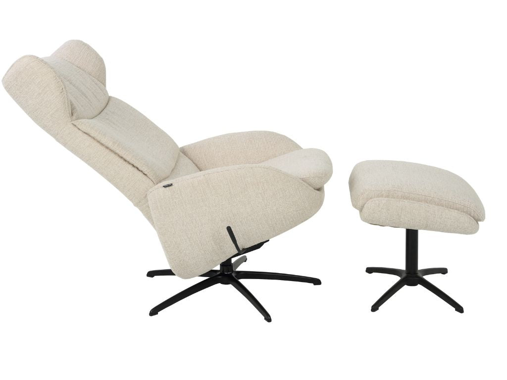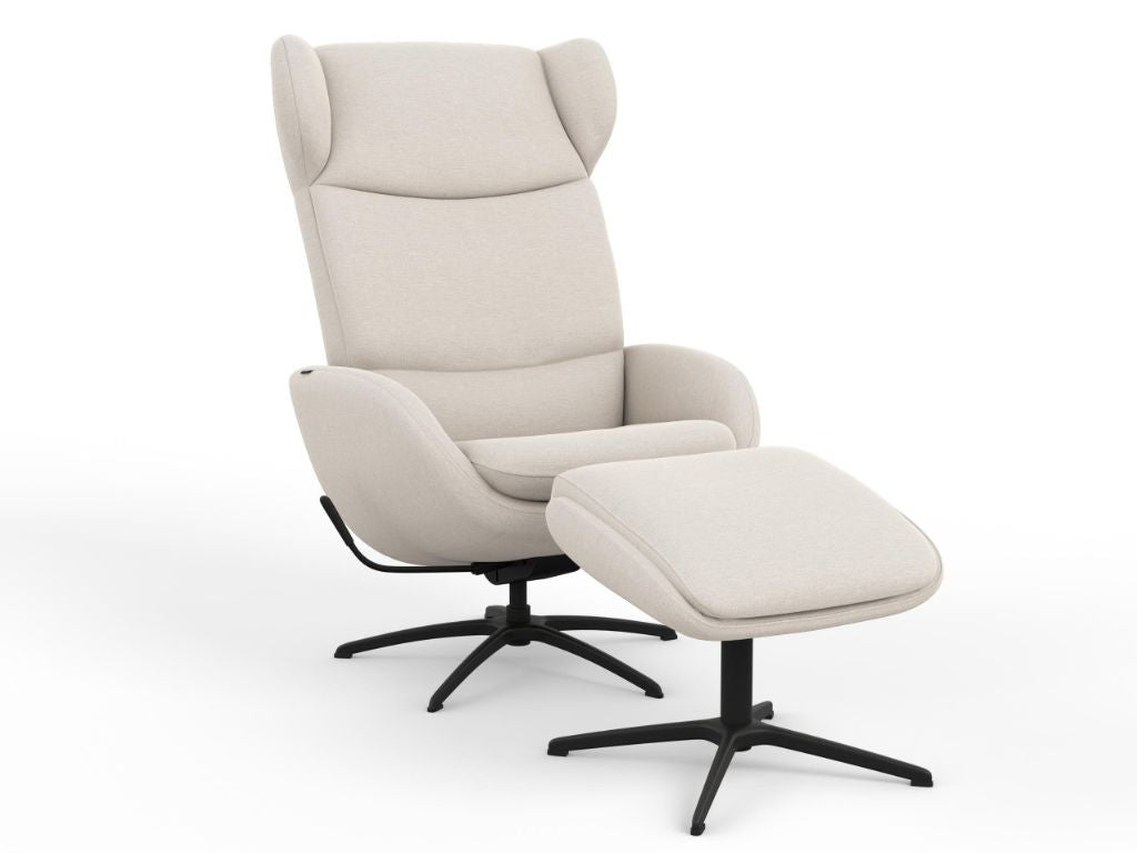 The Fjords Stella recliner and ottoman offer a refined balance of style, comfort and function. Designed in a single, perfectly proportioned size, Stella features a unique center-post glide system with a lock mechanism that, when disengaged, allows for a gentle rocking motion. A sleek black metal star base supports the chair and reinforces its contemporary silhouette.