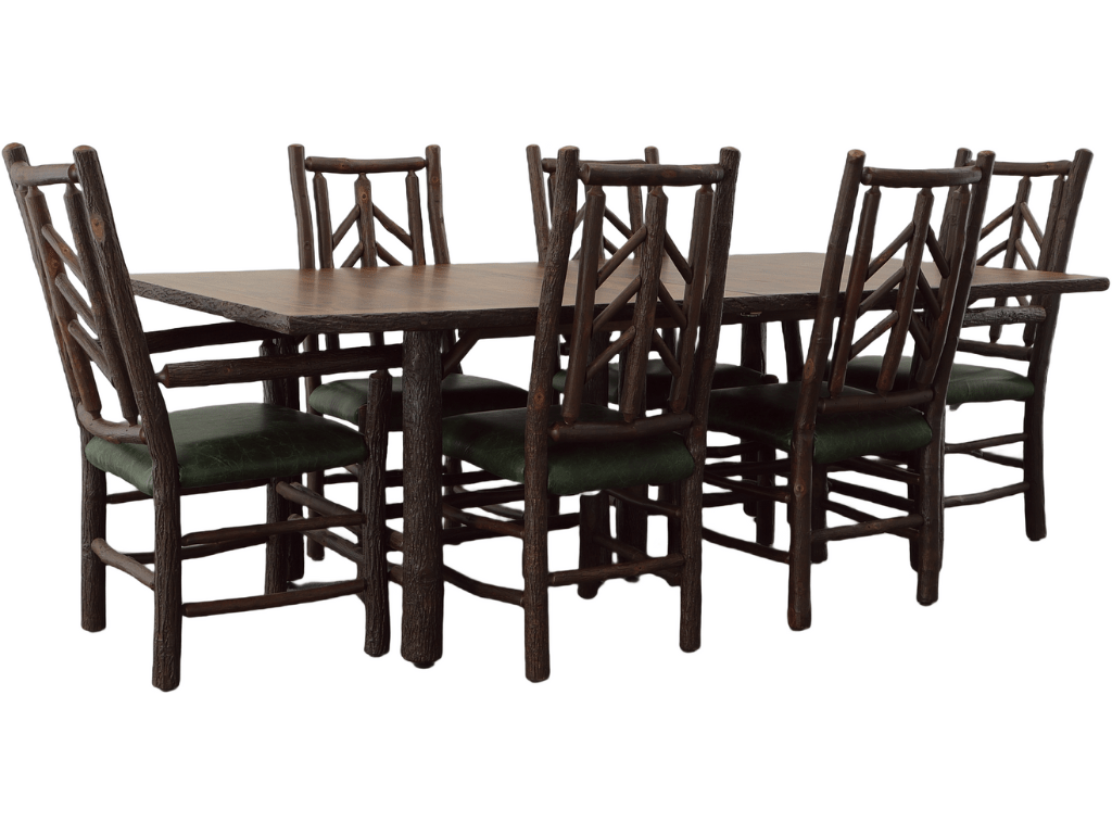 The King’s Canyon Extension Table comes in various options: the no-leaf 84-inch length, one-leaf 102-inch length or two-leaf 120-inch length. Constructed of a simple, thick rough-edged top on a hickory frame, the one- and two-leaf versions easily pull apart and the leaf or leaves inserted to accommodate a crowd. When not in use, the more compact size is perfect for intimate family meals.