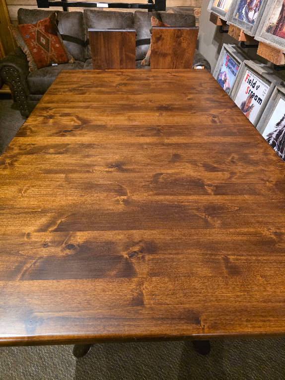 This dining table from Hilltop Hickory aligns with classic lake, lodge, western and Arts & Crafts style, making it suitable for a wide variety of rustic-leaning homes. The alder wood top and bark-textured hickory legs combine style with function; hickory is one of the hardest woods available and was the pioneers’ wood of choice for axe handles, wagon wheels and ladders. Various sizes are available in both rectangular and square formats (and can be purchased with leaves that store under the table top) to suit all your interior needs.