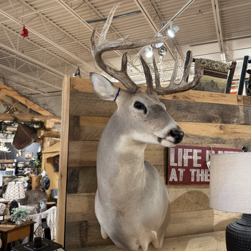 This Whitetail Mount is a beautifully preserved shoulder mount showcasing the proud antlers of a whitetail buck. Expertly crafted, it offers a natural and detailed display, perfect for adding rustic charm to any space. Ideal for hunters and wildlife enthusiasts, this mount brings the outdoors inside with authentic craftsmanship and striking presence.