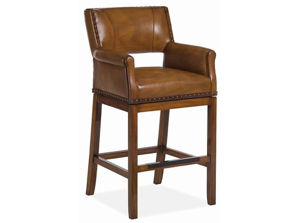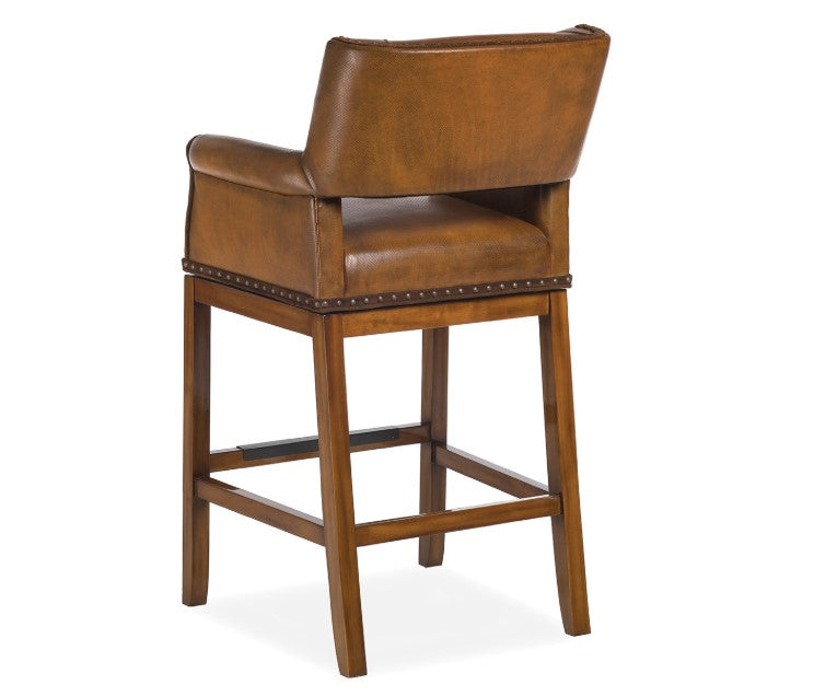 Elevate your bar or kitchen with the Club Bar Stool, a sophisticated seating solution that combines classic design with premium materials. This striking stool features luxurious Hyde Park Earth Burnished leather upholstery that develops a rich patina over time, complemented by antique bronze small nail head detailing that adds vintage charm and visual interest. The Sonoma Chocolate trim provides a warm contrast, while the Denmark wood finish base ensures durability and timeless appeal. Standing at 42.75 inches high with a 24-inch width and 25.75-inch depth, this bar stool offers comfortable seating and a substantial presence at any counter or bar. Perfect for creating an inviting gathering space, the Club Bar Stool brings together quality craftsmanship and refined aesthetics for a piece that will enhance your home for years to come.