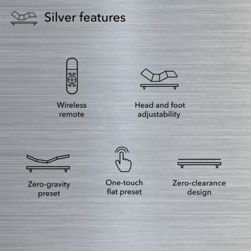 Enjoy the additional adjustability and convenient features of the baselogic™ Silver Adjustable Base to take your sleep and lounge game up a level.