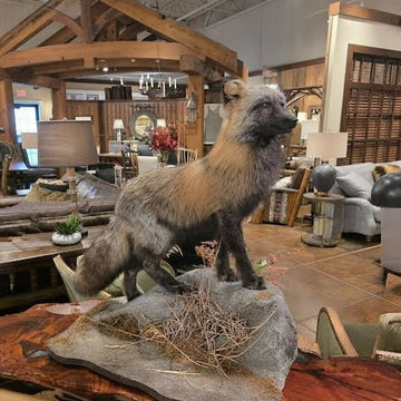 This striking Sly Fox figurine features captivating red and black fur that gracefully fades, creating a lifelike appearance. Positioned proudly atop a textured rock base, it captures the fox's natural elegance and alert posture. Ideal for adding a touch of wildlife charm to any space, this piece combines artistic detail with a realistic portrayal.