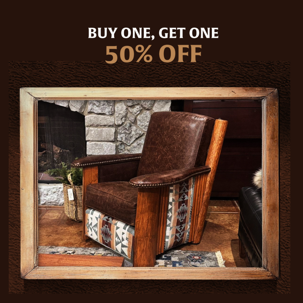 Handcrafted by Green Gables Furniture.. Leather & Fabric. Rustic Elegance.