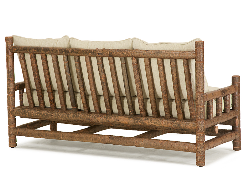 This Rustic Sofa showcases meticulous hand-notched detailing created using traditional woodworking tools and time-honored techniques. Built with eco-friendly materials and master craftsmanship, this piece delivers exceptional strength, comfort, and rustic artistry. Upholstered deck for indoor use, with optional outdoor spindle deck available.