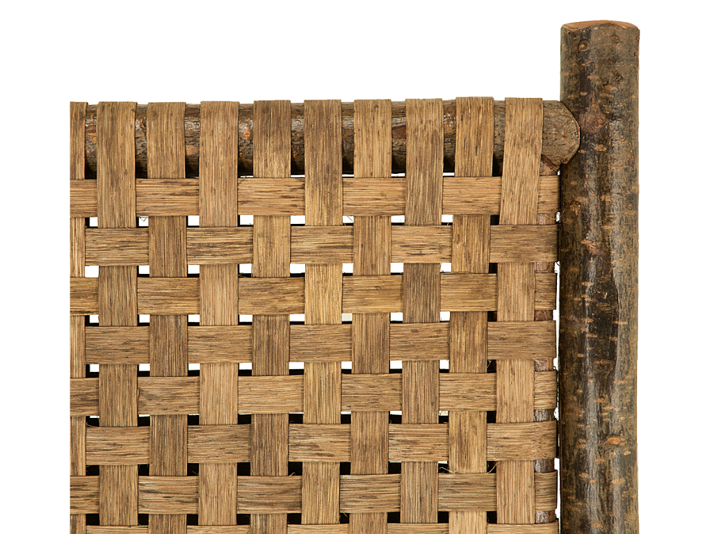 This Rustic Settee features a beautifully handwoven flat-reed back, showcasing exceptional artisan craftsmanship. Built using eco-friendly construction methods and traditional techniques, it offers enduring strength, comfort, and rustic elegance. Designed exclusively for indoor use with a tight upholstered seat.