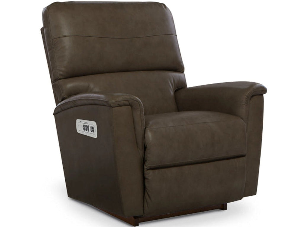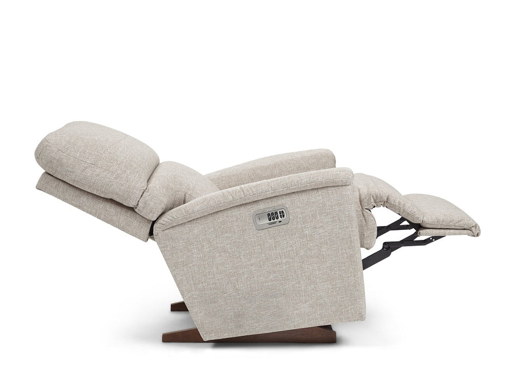 The Ava Power Rocking Recliner with Headrest is an update on a casual classic. Shaped foam padding wraps the arms. A tall back, headrest, faux box-border chaise seat and legrest offer power adjustable comfort, fresh style and calm rocking relaxation.