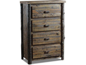 This 4 drawer chest is expertly crafted from locally sourced barnwood and hickory in Hayward, Wisconsin. The unique blend of materials creates a charming and sturdy piece for your bedroom. Handmade with care and dedication, this chest is a lasting addition to any home.