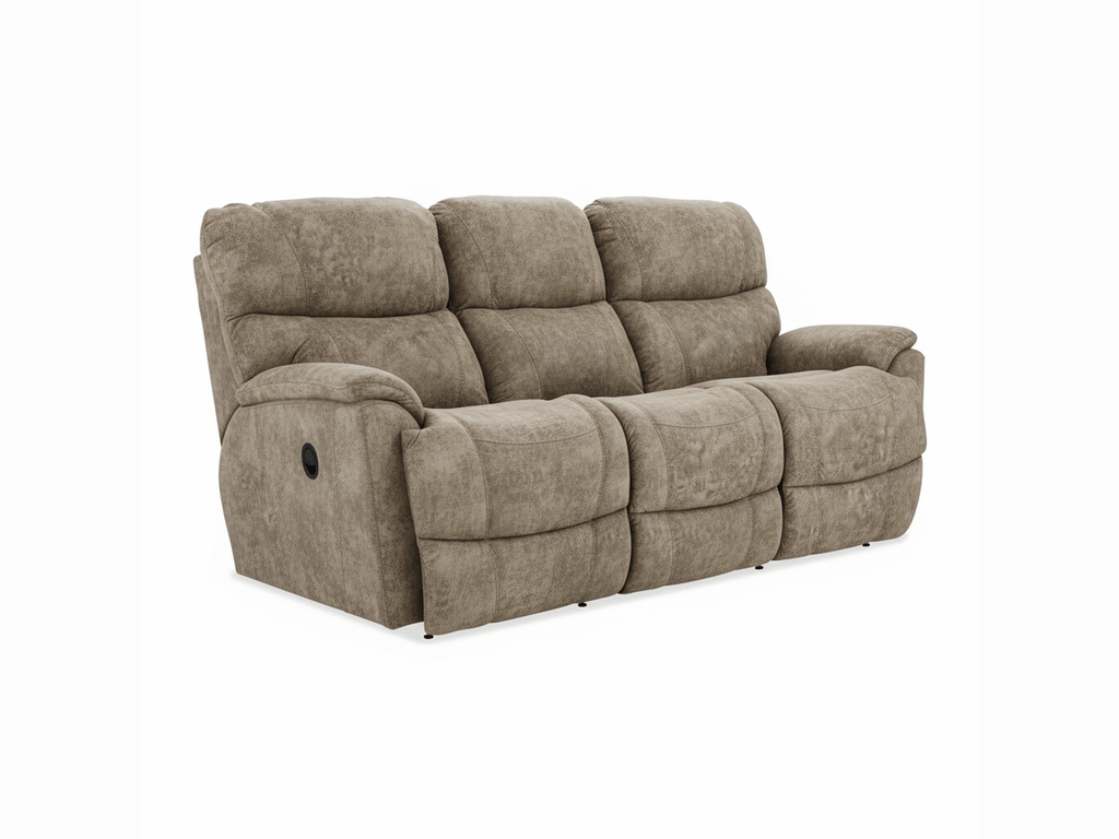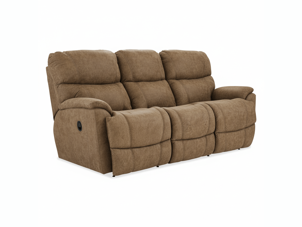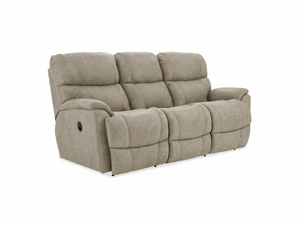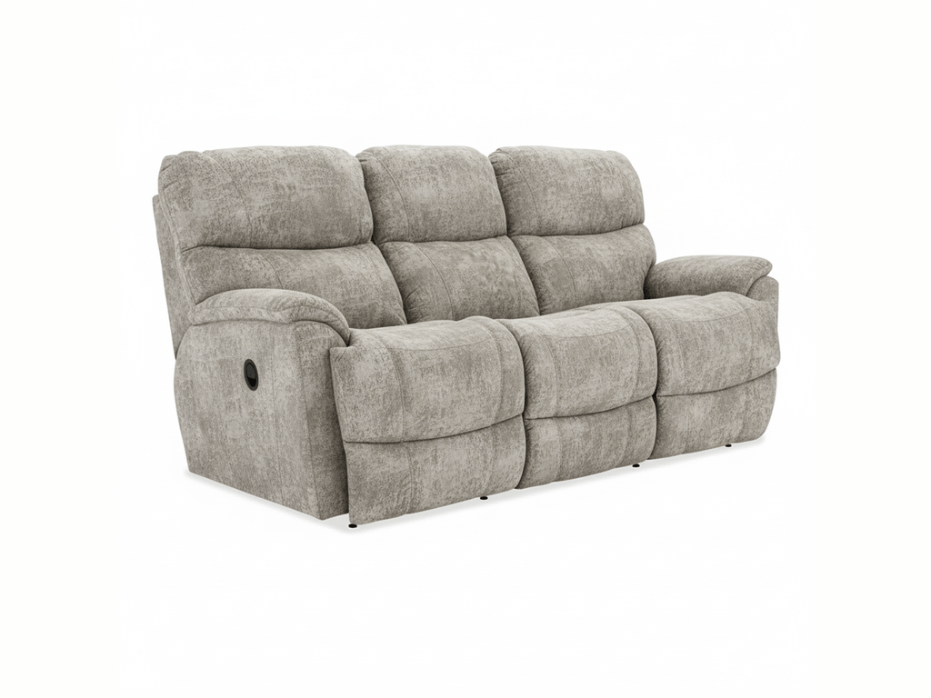 Turn casual evenings at home into cozy family nights with our Trouper reclining sofa. Sink into one of the three sculpted bucket seats as the split back cushion provides soft support of your head, neck and lumbar. Dual-sided reclining allows both the right and left arm seats to recline with a simple latch release. Adjust the back and chaise leg rest for personalized reclining comfort, or lean back without raising your feet. Perfect for movie nights and more, Trouper has plenty of comfort to go around.
